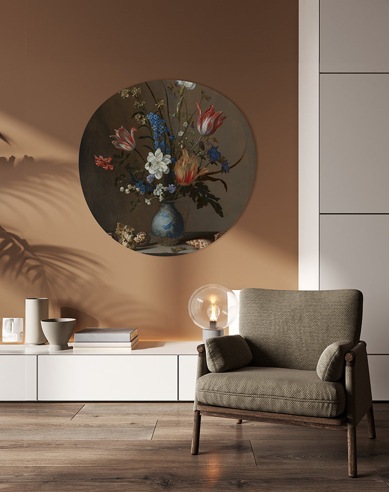 A beautiful oil painting by Balthasar van der Ast with flowers in a Chinese vase.