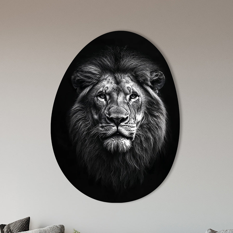 A design of a lion's head against a black background.