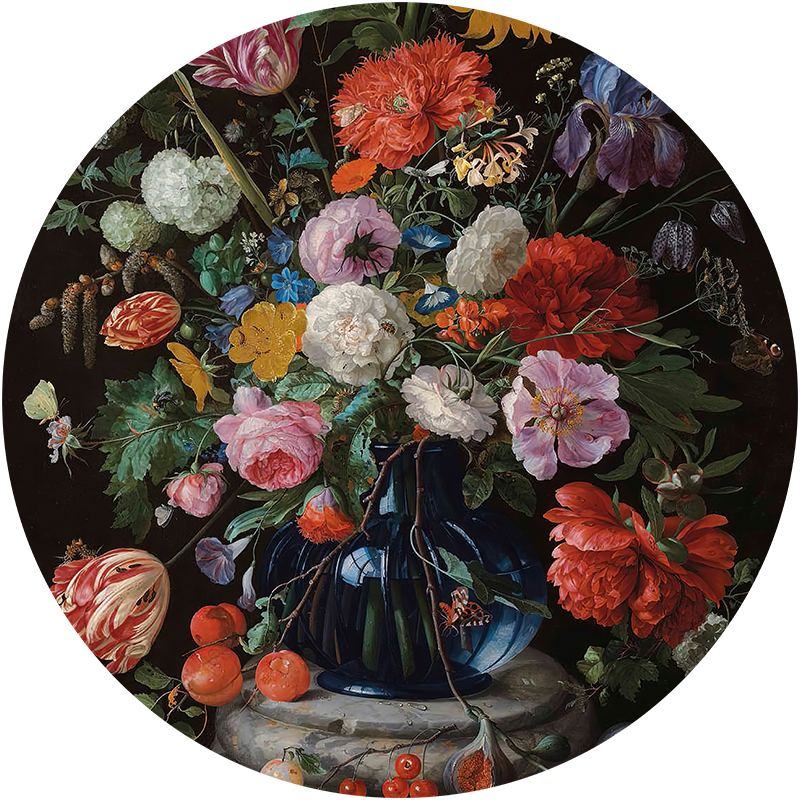 A beautiful painting by the famous painter Jan Davidsz de Heem of a collection of flowers in a glass vase, made around 1650.