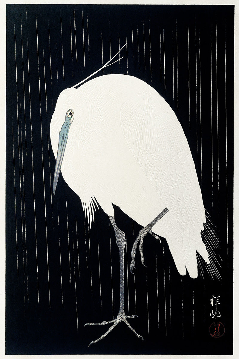 This beautiful work has its roots in Japan with artist Ohara Koson. In this artwork a group of egrets are standing in the water.