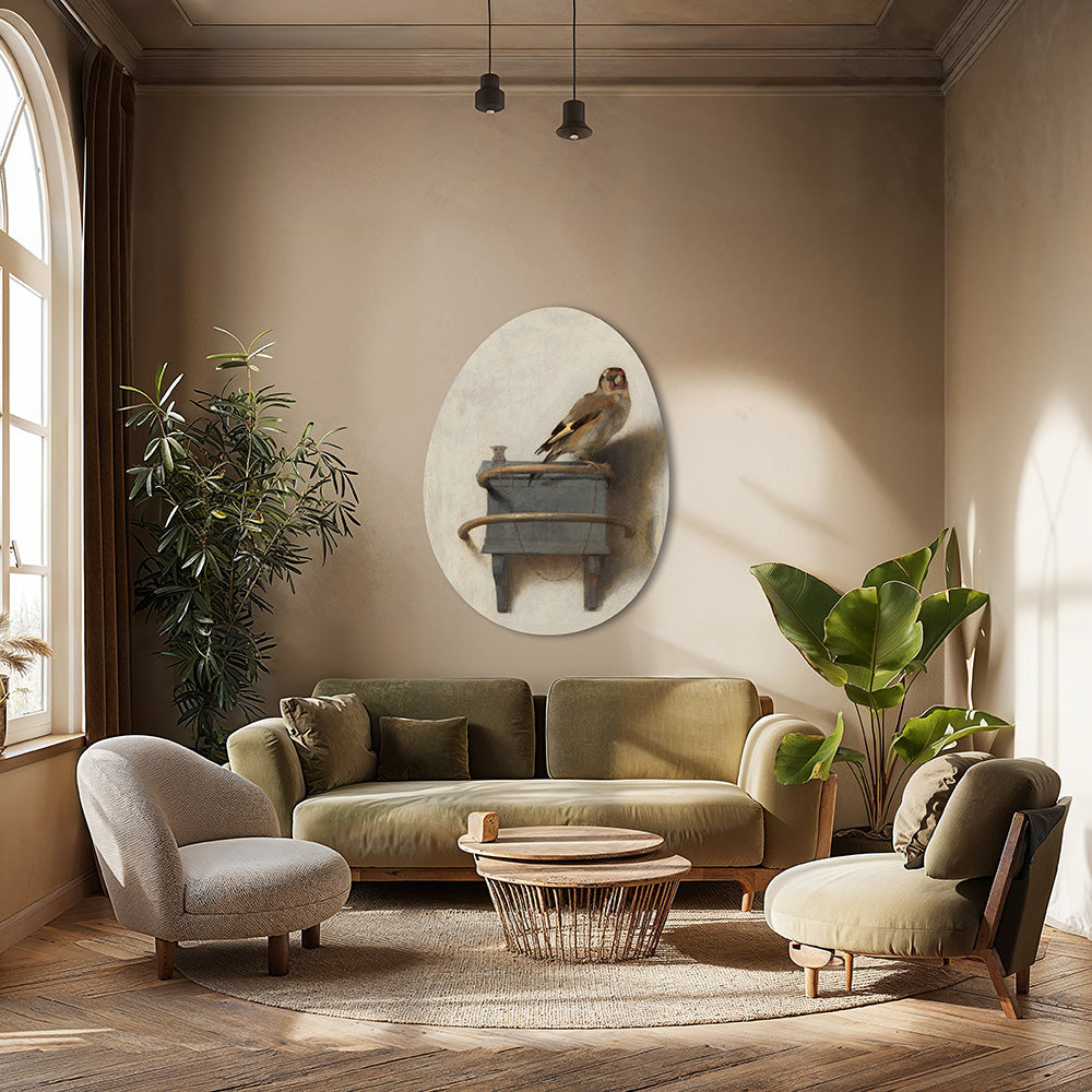 The Goldfinch is a painting by Carel Fabritius made in 1654. It is a portrait of a goldfinch (putter) sitting in front of a white wall.